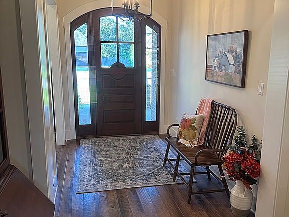 This house is completed with Taj Mahal Quartzite countertops, hardwood floors, custom draperies, sprinkler system, and third garage with cabinets and sink perfect for shop or hobbies.