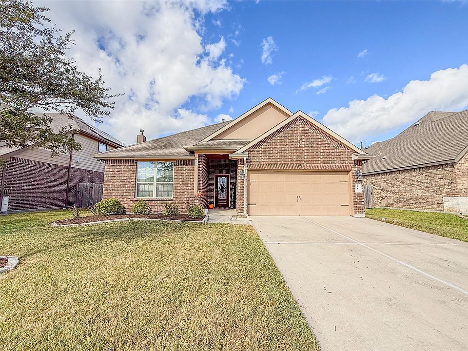 Welcome to 2513 Kaman Ln, located in the desirable Bakers Landing community! This beautifully maintained D.R. Horton home offers 3 bedrooms, 2 full baths, and an inviting open-concept floor plan that creates a spacious and comfortable main living area. The kitchen features granite countertops, stainless steel appliances, abundant cabinetry, and a large island with seating for 3 4. All bedrooms are generously sized, including the primary suite with a large bath featuring a separate tub and shower. Bakers Landing provides wonderful amenities, including a community park and walking trails. Zoned to Pearland ISD, with Pearland High School just minutes away, this home brings together comfort, convenience, and a true sense of community. A MUST-SEE!