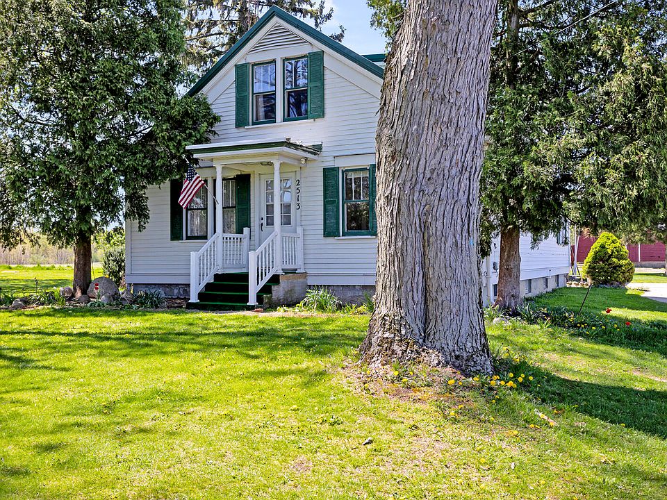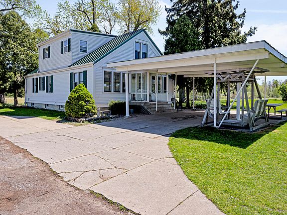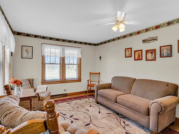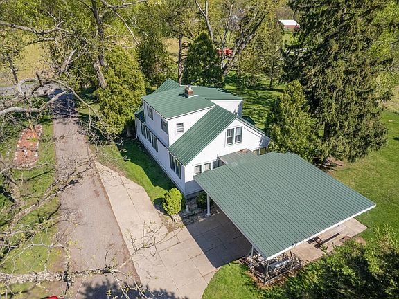 Beautiful Farm House situated on 5 acres w/6 outbuildings in Northwest School District. Enter into family room overlooking the back yard, incredibly large kitchen w/pantry & dining area, 2 BR's on main level, primary bedroom has 2 closets (bedroom furniture included), full bath. Upstairs you will find 2 more bedrooms, 2nd bath and a bonus room off of 4th BR which includes nursery, play room or dressing room. Beautiful hardwood floors throughout! Full basement w/walk out Bilco door, has wood stove (chimney would need to be updated if you plan to use. Geothermal Heat & Air. Metal Roof. Outbuildings Include: Machine Shed, Grainary, Chicken Coop, Milk House, Barn & Storage Shed. Carport behind house. NEW Septic & Drain-field (May 2024).