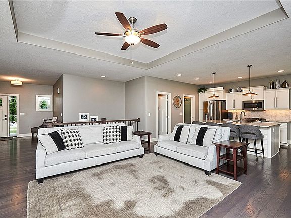 This stunning ranch home boasts 4 spacious bedrooms and 3 bathrooms, offering ample space for comfortable living. Nestled at the end of a quiet cul-de-sac in Grimes with highly acclaimed Johnston Schools, this gem sits on a generously sized pie-shaped lot measuring .43 acres. The large fenced-in backyard offers a safe haven for children and pets to play freely. Quality built by Drake Homes, this resale property promises durability and lasting beauty. The open concept floorplan ensures a natural flow between the entry, living, kitchen and dining spaces, making it easy to move from one room to another. The spacious kitchen has a large island and connects to the dining area with space for an oversized table. This space is perfect for dinner parties or enjoying family meals. The walk-in pantry offers plenty of storage space for all your culinary needs. The main level is home to the primary suite and two additional bedrooms that share a spacious bathroom. The wide stairway leads to the thoughtfully finished walkout lower level, ideal for entertaining guests or creating a cozy family retreat. The living room features space for a comfy sectional to cozy up on and watch movies on the projector screen, a dining or game table and wet bar. The lower level is also home to an oversized 4th bedroom, 3rd bathroom and storage. Enjoy being close to trails, parks and all of the shopping and dining that the City of Grimes has to offer! All information obtained from Seller & public records.