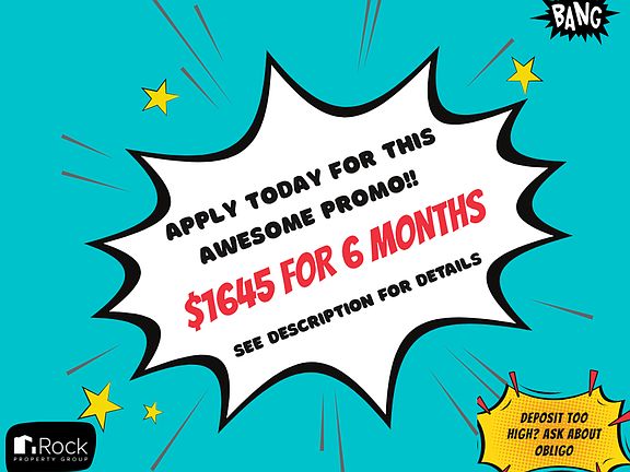 Move-In Special! For well-qualified applicants, get the rate for as low as $1,645/month for up to 6 months depending on your credit score, then $1,845/month after the promotional period with a 15-month minimum lease. Inquire for more details!