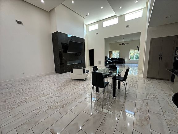 Nestled within a gated community, this stunning two-story home offers great panoramic views. Soaring 35-foot ceilings create a grand and airy atmosphere, accentuated by elegant marble floors and a marble staircase. The modern kitchen and bathrooms are a blank canvas awaiting your personal touch. This residence features three propane heaters, three central air conditioning units, and a spacious five-car garage. A security fence ensures privacy and peace of mind. With a touch of fresh paint, this move in ready property will shine.