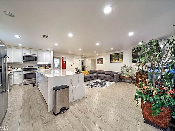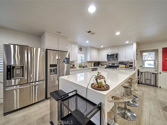Welcome to the desirable area of Anaheim. This charming home with 4 beds, 2 baths and 1,822 sqft of living space is located in a serene neighborhood and a meticulously landscaped front yard and well-maintained lawn create an inviting entrance to the property. The driveway leads to a spacious garage. This property promises a blend of comfort and elegance, making it an ideal choice for homeowners who appreciate both style and convenience. This modern living room is a perfect blend of comfort and style, ideal for a contemporary lifestyle. The room is well-lit with recessed ceiling. With doors leading to other rooms, this living area promises easy navigation throughout the home. The cozy fireplace promises warmth and ambiance. Natural light floods in through the large windows equipped with shutters, illuminating the expansive floor space that is accentuated by modern flooring. This family room area offers comfort. This modern, spacious kitchen is a perfect selling point for the property and illuminated by natural light and recessed lighting, showcasing the pristine white cabinetry and gleaming appliances. A generous island with seating provides ample space for casual dining or entertaining guests. The open layout ensures easy movement and accessibility to all areas of the kitchen, while the contemporary design elements promise a blend of style and functionality that will appeal to prospective homeowners. Dining area beside the kitchen. Extra space gym area for exercise. This charming single-story home surrounded by beautiful neighborhood is waiting for the new owner. Do not miss the opportunity to make this home yours.