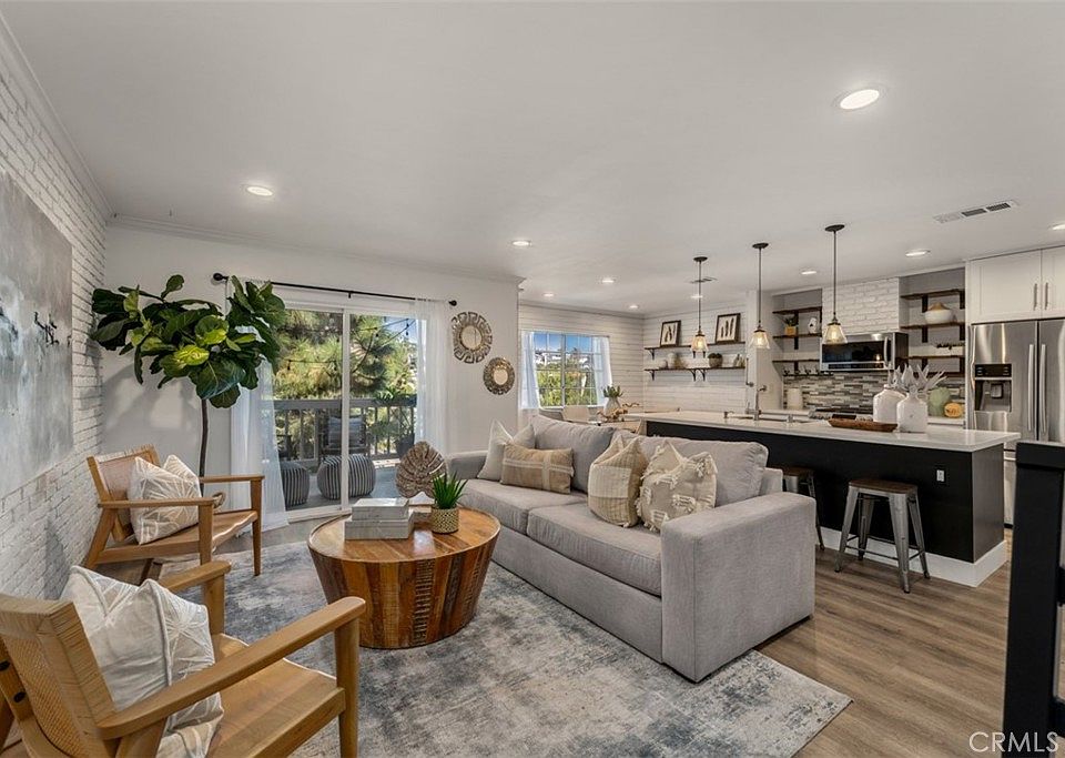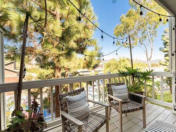 Extremely rare Pacific Terrace condo in the heart of Lantern Village and just a short stroll from Dana Point’s best amenities. A private gated stairway leads from the condo complex to Lantern Bay Park and from there it’s just steps to the sand and sea at Doheny Beach. From perfect summer longboarding waves or paddleboarding on calm mornings, to music and art festivals, being this close to Doheny Beach is the ultimate expression of SoCal beach lifestyle. But it’s not just about the beach – local favorites such as Stacks Pancake House, The Rib Joint, and Dana Point Ale House are also nearby. Before going out for the evening, entertain friends in the open concept great room where a large kitchen island faces toward the living and dining rooms. Or, enjoy a vista of trees and rolling hills from the spacious balcony off the living room while sipping margaritas and catching up. Upstairs, there is a large main bedroom with plenty of space for a king bed, convenient indoor laundry machines, and a spacious bathroom with a tub. This condo also includes two covered parking spaces located directly at the front door – no more schlepping groceries from some faraway parking lot. The carport area includes a storage cabinet and freestanding locker for beach gear. Low HOA dues and no Mello-Roos.