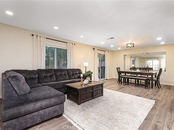 Welcome to this stunning 3 bedroom, 2 1/2 bathroom end unit townhome nestled in Stevenson Ranch. This home boasts an inviting open-concept layout, perfect for modern living. The large living room includes a cozy fireplace and a spacious dining area that leads to the kitchen, featuring gorgeous countertops, a stylish backsplash, and sleek stainless steel appliances. Beautiful wood plank vinyl flooring throughout leads to the upper level, where you will find three generously sized bedrooms, two bathrooms, and a side-by-side laundry closet. Enjoy seamless indoor-outdoor living with direct access to the spacious patio, ideal for entertaining guests or relaxing in privacy. Convenience is key with a 2-car garage, guest parking nearby, and a community pool, spa, and playground, all located in close proximity to abundant shopping and dining options and easy access to the 5 freeway. Don't miss the opportunity to make this beautifully updated townhome your new haven in Stevenson Ranch!