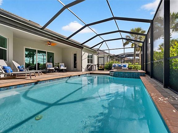 Situated along the picturesque 16th fairway of the acclaimed Gordon Lewis–designed golf course, this stylish 2023-built premium residence is located in the coveted Heritage Landing Golf & Country Club in Punta Gorda. Offering over 2,200 square feet of refined living space, the home includes a deeded Golf Package—granting full access to the championship course and an unrivaled golfer’s lifestyle. You'll notice the screened entry as you approach your new home. Along with the open concept, the home features impact windows and doors, 10-foot ceilings, 8-foot doors, plank tile flooring, crown molding, and extra exterior lighting. The living area boasts a stunning stone accent wall with fireplace and an incredible view of your pool and the golf course. What a backyard! The kitchen is a dream for entertainers, with a large island, granite counters, ample cabinetry, a closet pantry, and breakfast nook. The outdoor space offers nearly 1,000 square feet of screened living area with a heated saltwater pool and spa. Sealed pavers provide plenty of room for entertaining, while the covered lanai includes Storm Smart remote-operated screens. From your primary suite, step out for a midnight swim. The primary bathroom features dual granite vanities, a no-step shower, and a walk-in closet for all your golf and swimwear. Three spacious carpeted guest bedrooms welcome family and friends. The laundry room includes a utility sink, cabinetry, and maintenance closet. Furniture, including select Tommy Bahama pieces, and the golf cart are negotiable. Living in Heritage Landing means access to unmatched amenities—unlimited golf, a putting green, driving range, and pro shop. Enjoy six Har-Tru tennis courts, six pickleball courts, and two bocce courts. Relax at the resort-style heated pool with beach entry, lap lanes, and four satellite pools, or indulge in the spa and sauna. On-site dining includes restaurants, a bar, and tiki bar. The grand clubhouse with indoor/outdoor dining and activity rooms opened in Spring 2025. A 24/7 fitness center and activities director complete this resort lifestyle. Punta Gorda offers a small-town atmosphere with boating, fishing, and waterfront adventures. Visit Fishermen’s Village for dining, shopping, and entertainment. The historic downtown is pedestrian, pet, and cyclist friendly, with paths along the Peace River. Punta Gorda Airport is 10 minutes away, and Fort Myers just 30. Don’t miss the chance to own this incredible home in one of Punta Gorda’s most desirable communities—experience the luxurious lifestyle and stunning scenery for yourself!