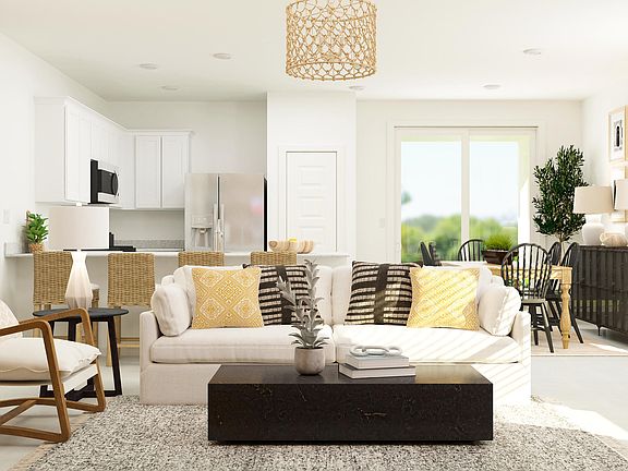 A charming courtyard greets residents and their guests into this single-story home. The open floorplan seamlessly connects the Great Room, kitchen and nook, plus a sliding glass door extends the living space to the covered patio. The owner's suite is located toward the back of the home with two secondary bedrooms down the hall.