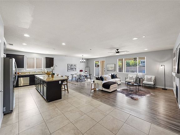Welcome to this beautiful single-story home ideally located in the heart of the highly sought-after Audie Murphy Ranch community. This spacious residence offers four bedrooms and two bathrooms, featuring an inviting open-concept layout designed for modern living. Enjoy a picturesque mountain view right from your living room—perfect for relaxing evenings or entertaining guests.The private primary suite is thoughtfully separated from the additional bedrooms and includes an oversized walk-in closet for exceptional storage. A generous laundry room with a large pantry adds extra convenience and organization to your daily routine.Fresh interior paint and the absence of carpet throughout bring a clean, updated feel to the home. The expansive three-car tandem garage offers abundant parking or additional storage options. The backyard is a blank canvas ready for your imagination—create the outdoor oasis you’ve always wanted!Audie Murphy Ranch offers an unmatched lifestyle with resort-style amenities including swimming pool, clubhouse, walking and biking trails, and more. Just down the street, you’ll find a park equipped with baseball fields, basketball courts, and playgrounds—perfect for outdoor fun and community living.