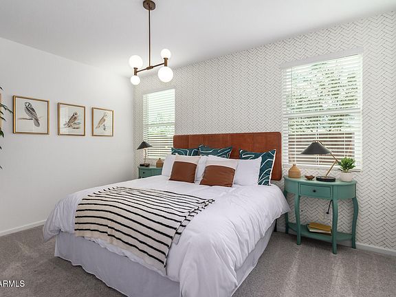 Current Lennar model home in the sought-after Windstone Ranch community of Surprise! A charming courtyard welcomes you into this single-story home featuring an open layout that connects the Great Room, kitchen, and dining nook. The kitchen boasts white cabinetry, quartz countertops, a gas cooktop, and stainless steel appliances. Sliding glass doors open to a covered patio with low-maintenance desert landscaping—ready to customize to your needs. The private owner's suite is tucked at the back, with two secondary bedrooms nearby. Neutral beige tile and carpet throughout. Furnishings available on a separate bill of sale.