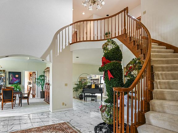 Prepare to be captivated by the stunning 6-bedroom, 6-bathroom single-family home with scenic long range views of mountains, canyon and city lights. The impressive foyer with high ceilings, marble flooring and a grand circular staircase will take your breath away. The large windows in the living room allow natural light to flood the space. Off the foyer is a beautiful library/study for those who work at home