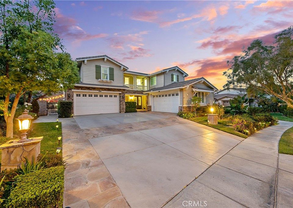 Welcome to the epitome of luxurious living in the exclusive gated community of Sierra Peak, nestled at the base of the majestic Santa Ana Mountains next to Yorba Linda. Highlighted by a massive entertainer's backyard featuring a rock saltwater pool and spa with million-dollar views, this Corona beauty takes the elements of luxury to an entirely new level. The backyard is the ultimate space for entertaining and relaxation, offering stunning views of canyons, mountains, and city lights. Resort-style amenities include a Pebble Tec rock pool and a spa with waterfalls and slides, a California-style room, a covered patio, a gas fire pit, plenty of deck areas, and extensive use of flagstone. This impressive floor plan spans 4,878 square feet and includes six bedrooms and five full bathrooms (two bedrooms and two full baths are located downstairs), a game room, and a hobby room, providing ample space for comfortable living and entertaining. Upon entering through the soaring double entry, decorated with diamond-shaped Marble floors, prepare to be captivated by the grandeur of this home. The two-story high ceilings, complemented by an impressive staircase system with two access points, wood floors, and crown moldings, create an atmosphere of opulence and sophistication. Entertain guests effortlessly in the sprawling family room, seamlessly connected to the gourmet kitchen featuring re-stained cabinetry, a center island with casual seating, and granite and slate stone surfaces. Stainless steel appliances elevate the culinary experience, and the walk-in pantry ensures ample storage space. Lavish appointments in the primary suite include a retreat, dual walk-in closets, French doors to enjoy the views from the private balcony, a spa-like bath featuring fine stone finishes, and a massive Roman tub and shower. The home is positioned at the end of a single-loaded cul-de-sac and enjoys the highest elevation in the community. Other perks include a split 4-car garage. Beyond its luxurious amenities, this home's location is unparalleled, offering seamless accessibility to Orange County's vibrant offerings and to the nearby expansive tracts of preserved open space, including the famed Skyline trails. The possibilities for exploration and adventure are endless, with major transportation arteries nearby, including the 91 Freeway, 241 Toll Road, and Metrolink. Embrace a lifestyle of luxury, convenience, and natural beauty in this extraordinary residence in Sierra Peak.