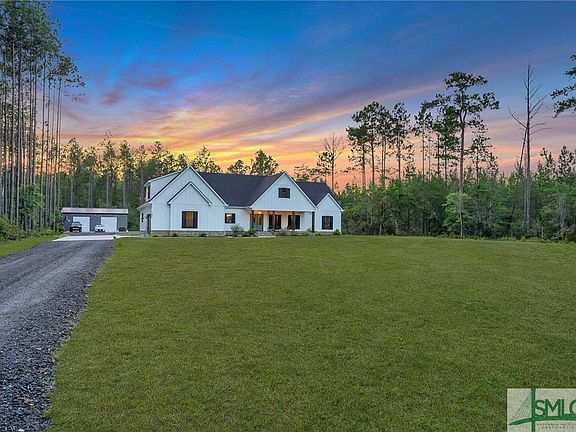 This ideal custom home on 6 acres borders 270 acres of timber. The estate is a sportsman or hobby farmer’s dream. 20 min from SAV-HH INTL, & 38 from historic Savannah, this modern country manor has easy access to the SE’s fastest growing metro area. Arrive down a private drive past expansive lawn. The elegant exterior blends seamlessly w/ classic & modern touches offering iconic luxury & practicality. This stunning design shows purpose w/ each detail; antique Egyptian doors to walk-in pantry, chef’s kitchen w/ 36” Fulgor Milano range & Alaskan quartz. A custom planned open layout maximizes natural light. Master w/ vaulted ceiling leads to mstr bath w/ oversized tub & rain shower. Dual walk-in closets offer built-ins, incl. a discrete vault/safe room. The large lanai ft. gas fireplace & bar sink. The drive ends at a 40'x25' shop, offset from a 250m private shooting range. A large chicken coop/run leaves ample space for garden beds, bee hives, or small orchard. Viewing by appt only.