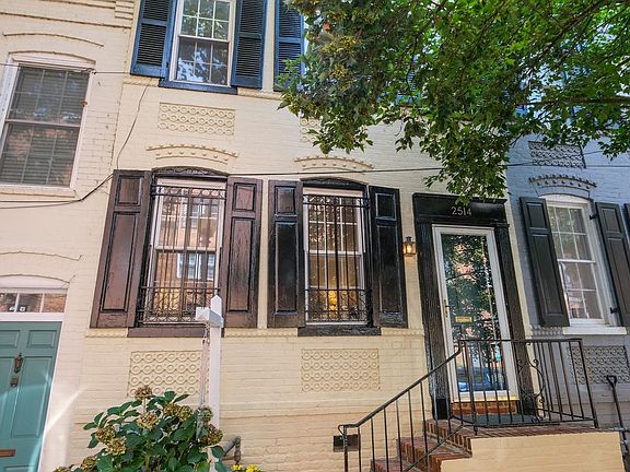 **Open Sept 26 1-3**Fresh exterior paint, updated interior, including new appliances ready to move in! Step back in history and discover this hidden gem nestled on a quiet 2 block street in the east village. Charm abounds in this freshly painted 2 level townhome. Beyond the classic brick exterior are warm hardwood floors, a wood burning fireplace, and French doors to a sunroom with skylights, and verdant views of the fenced yard. A wood deck and stone terrace provide a private setting for delightful outdoor living. Under the deck is a large crawl space. Living room and dining area open to a galley kitchen. The washer and dryer, half bath, and closet with mechanicals are adjacent to the kitchen. The upper level has a spacious front bedroom, a second bedroom with a convenience sink, and a full bathroom. ***THE METAL ROOF, 2 SKYLIGHTS, STAINLESS STEEL ENERGY EFFICIENT KITCHEN APPLIANCES and GARBAGE DISPOSER are brand NEW. HWH and CAC are also energy savers! Fresh paint inside and out.*** Stroll to Dupont metro, shops and restaurants on Wisconsin Avenue, Rose Park with playground, ball field, basketball, dog walking, and Weds farmers' market, Georgetown Library, Georgetown Harbor, National Park on the Potomac, Stachowski's Deli. and more.