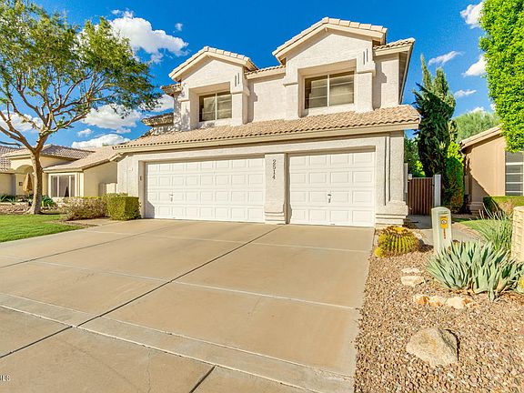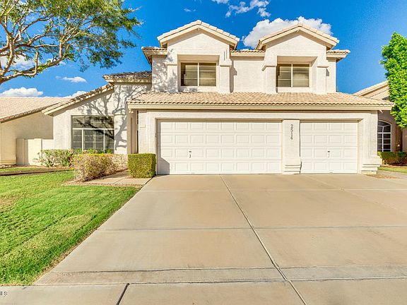 Wow! Come see this 5 bedroom, 3 bathrooms with a pool and a 3 car garage in the heart of Mountain Park Ranch backing to a wash! Large living and family room with nice dining room. Open eat-in kitchen with island, upgraded counter tops, built-in microwave and view of beautiful backyard! Large master bedroom and bathroom with mountain views, separate shower tub and walk-in closet. 3 more large bedrooms upstairs with a bedroom and full bathroom downstairs. Neutral paint, carpet, tile, plantation shutters and ceiling fans through out this excellent floor plan. Large 3 car garage with cabinets and a sink. This home is tucked back in a beautiful location of the subdivision. If you show it, you will sell it!