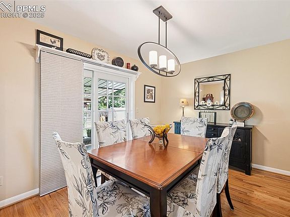 Welcome to this mid-century modern home! This remodeled tri-level is located on a quiet street in the highly sought-after Templeton Gap neighborhood. This light and bright home features original hardwood floors throughout the main and upper levels. The open-concept main floor boasts a beautifully remodeled kitchen with bar seating, quartz counters, and newer Slate GE appliances, including a gas range oven, perfect for breakfast and casual gatherings. The inviting kitchen and formal dining area opens directly into the living room, providing an ideal space for entertaining. From the main floor, you can access a private, mature, fenced backyard, complete with a concrete covered patio and a separate gazebo adds an additional sitting area. It's the perfect spot for relaxing and entertaining family and friends in the warm Colorado sunshine. Upstairs, you'll find the primary bedroom with an attached half bath, two additional bedrooms, and a full updated bath. The light and bright lower level includes a family room with a fireplace, a fourth bedroom, a three-quarter bath, and a laundry room that walks out to the back yard. Additional updates include a new roof and patio cover in 2023, This home is conveniently located near Downtown, Patty Jewett Golf Course, Colorado Springs Country Club, Rock Island trail, and more! You'll also appreciate being just half a block away from the beautiful Nancy Lewis Park and minutes from I-25 and the Powers cordor.