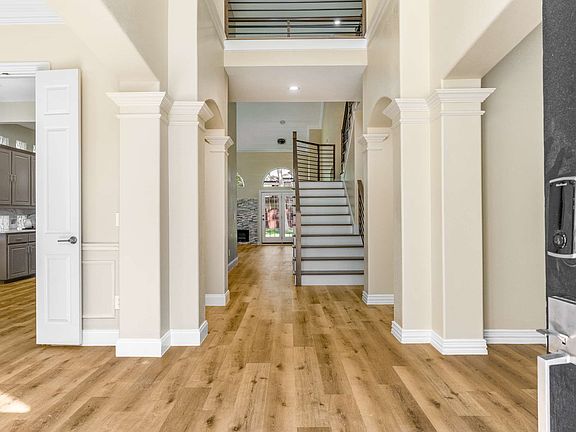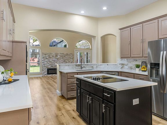 Charming and recently refreshed, this timeless two-story home sits in one of McKinney’s most desirable areas just moments from Eldorado Country Club. With 4 bedrooms, an office, 3 living areas, and 2 dining spaces surrounded by mature shade trees, this home blends elegance, comfort, and functionality. Updates include luxury vinyl plank floors, refinished fireplace, quartz countertops, kitchen backsplash, cooktop and sink, light fixtures, ceiling fans, paint, counters and tile floors in bathrooms, as well as a primary bath makeover. Step through the inviting entryway into the formal living and dining rooms that are filled with natural light, while the hallway showcases custom art niches and an updated staircase with sleek horizontal railings. A spacious family room features a stunning chipped stone fireplace and a door that opens to a tranquil backyard, the perfect place to relax and unwind. The updated kitchen combines style and practicality with an island cooktop, abundant counter space, and a serving bar with seating. While the cozy breakfast nook has a built-in window seat and a generous pantry, adding everyday convenience. The primary suite offers a private escape with a corner fireplace and spa-like bath complete with soaking tub, seamless glass shower, dual vanities, and walk-in closet. Also on the main level, a versatile office can easily serve as a guest room or nursery. A half bath, large laundry with sink, and direct access to both a two-car and a separate one-car garage (ideal for a golf cart, storage, or workout area) add to the thoughtful layout. Upstairs are three spacious bedrooms, two full baths, and a game room for added flexibility. The private backyard boasts a lush lawn, towering trees for natural shade, and an extended wood deck, perfect for entertaining. Zoned for McKinney ISD and ideally located with quick access to US-75 and Highway 121, this home offers an easy commute and proximity to premier golf, shopping, dining, and entertainment.
