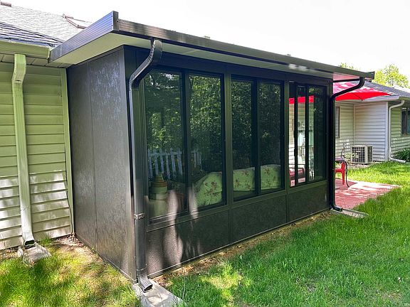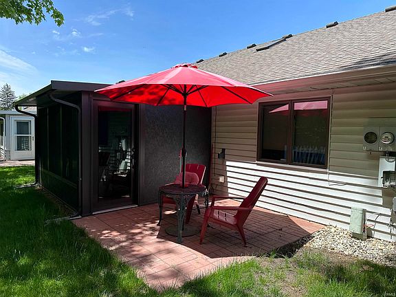 Extremely nice with many updates in this two bedroom, two bath, 2 car attached garage, a newer LJ stone sunroom completed in 9/2022 and a outdoor bricked patio area which has a great view of the woods behind this condo. Great room features a skylight and gas log fireplace with open concept living into the kitchen breakfast area , dining area. Large master ensuite with walk in closet. Kitchen features newer solid surface counter tops, new microwave, dishwasher, plenty of cabinets for storage. Utility sink in laundry room. HOA fee is $100 per month covers lawn mowing, snow removal. Owner is reserving chandelier and kitchen cabinet red door knobs will be replaced with gold ones