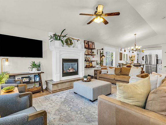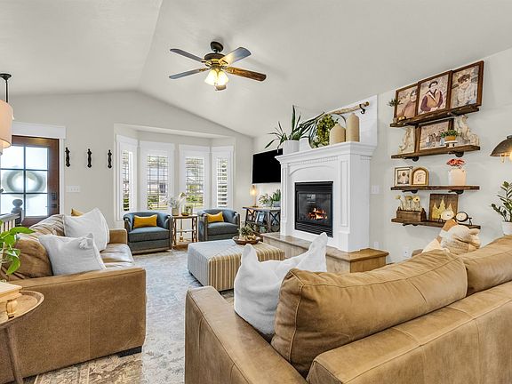 Well-kept rambler located in a quiet neighborhood. Inside this cute home you will find updates throughout including quartz counter tops, laminate throughout and stainless steel kitchen appliances. The main floor features a bright-open floor plan with plantation shutters and a gas fireplace. Main floor primary suite with double sinks in the vanity and walk-in closet. Fully finished walk-out basement with a large family room, full bathroom, storage, and 1 bedroom + a flex space that can be used as an additional bedroom or office. Plenty of outdoor entertaining areas and a concrete basketball court. An additional concrete pad is ready for a shed or hot tub. Air conditioner, furnace & water heater are approx 1 year old.