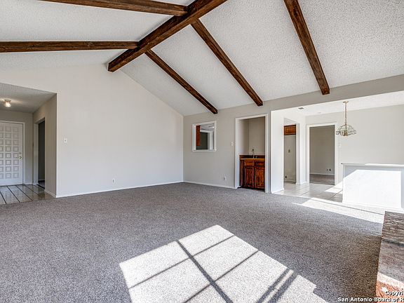 Welcome to this 3-bedroom, 2-bath home in the desirable Oak Hollow Estates. This single-story home offers 2,022 square feet of living space, sits on a .22 acre lot with a 2-car garage. Inside, you'll find two living areas and two dining areas, giving you plenty of room to spread out. The second living area has high ceilings with wood beams, a raised brick fireplace, and a butler's pantry. Large windows bring in lots of natural light. The home has been recently updated with new carpet, new flooring in both bathrooms, and fresh interior paint. Located near Highway 281, The Quarry, San Antonio International Airport, and other popular spots-this home offers both comfort and convenience. Home is ready for you to transform it into your own style!!
