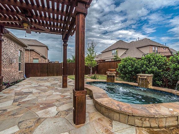 STUNNING SINGLE STORY home in the center of Trophy Club on a spacious lot. The backyard is delightful with large flagstone patio, pergola and SPOOL...and still plenty of room for play! Great to find a SINGLE-STORY home this size with a THREE car garage. Hand-scraped wood floors in major rooms. Lovely island kitchen with double ovens and two pantries, open to eating area and expansive main living room. Venetian plaster finishes out the stately formal dining room. FOUR bedrooms with a three way split and a flexible bonus room near the master, ideal for an office, media room, nursery or playroom. Wonderful location near schools and city amenities! Come home to The Highlands at Trophy Club!