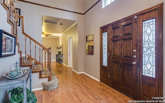Pretty traditional features PRIVATE park-like .30/acre bkyard w/shady mature trees & multiple decks that backs to greenbelt. Abundance of cabinets & storage in light & bright kitchen, granite island & windows overlooking bkyard paradise. Two living areas (one w/fireplace) offer options for formal/family rms or study or pool table "man's cave". Sep dining room. Master bdrm opens to private deck in the trees. Lg master closet. Lg shed in bkyd w/loft, window ac great for child's play or temp-controlled storage