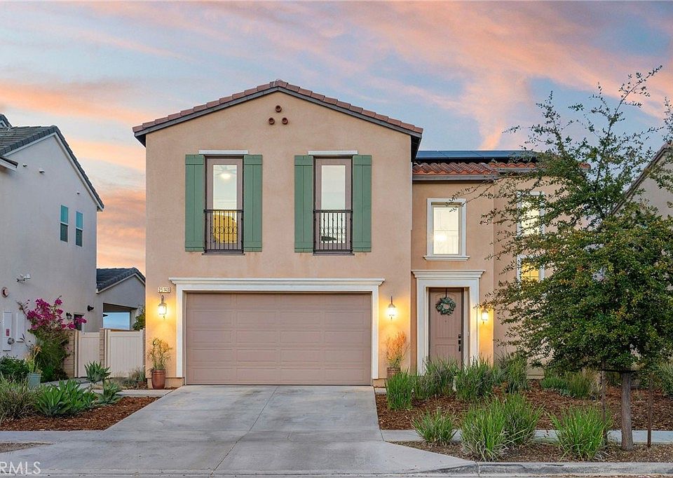 THE BEST DEAL IN ALL OF ALIENTO! This spectacular VIEW home is centrally located in Santa Clarita in the gated community of Aliento, has easy freeway access, and is just 7 years old. The 2,650 square-foot home has spectacular east-facing city and mountain views, avoiding the hot afternoon sun. The heart of the home - the Great Room and Kitchen - features a wonderful open floorplan with an abundance of space for cooking and entertaining. The wood-look tile on the covered patio mimics the interior flooring, creating a seamless transition from inside to out. With a total of 4 bedrooms and 3 bathrooms, there is one bed and bath downstairs, plus a loft with a custom barn door upstairs, and custom plantation shutters and remote-control window coverings throughout the home. Situated on a 5,778 square-foot lot, the backyard sparkles with bistro lights and big views and is already plumbed with gas for a built-in kitchen and pool. Walking distance to the elementary school and community amenities including clubhouse, gym, pool, splash pad, wading pool, hiking trails, and park. And just MINUTES away from the new Trader Joe's, this is a wonderful place to call home.