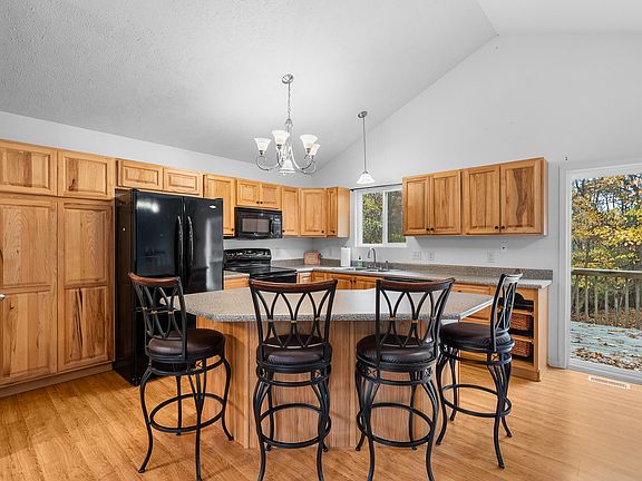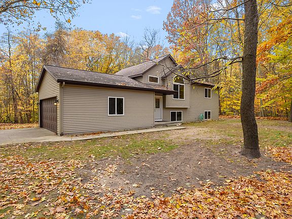 Nestled on 2 serene, wooded acres in Sandy Oaks neighborhood. This 4-bedroom, 3-bath home blends comfort and convenience. The main floor showcases vaulted ceilings and a stunning kitchen with rich hickory cabinets and updated appliances. The finished walkout basement offers two additional bedrooms, a full bath, and plenty of room to gather. Enjoy a private, wooded setting just behind Timber Ridge Ski Resort and within the Gobles School District. This property is just a short drive to Kalamazoo or the lakeshore for added convenience.
