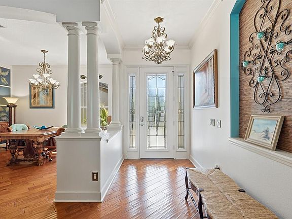 A home built to impress, inspire and protect! Crafted for those who seek beauty in the details and comfort in every corner. From the moment you arrive, the manicured landscaping and timeless architecture set the stage for what’s inside: over 3,000 square feet of refined living defined by quiet luxury and effortless sophistication. Step inside to soaring tray ceilings and freshly painted walls, complemented by upgraded lighting and an open-concept layout. The chef-inspired kitchen, with its quartz countertops and solid wood cabinetry, opens effortlessly to the spacious family room and to a dedicated office overlooking the pool, perfect for balancing work and leisure. Then, step outside to your own stunning, private backyard retreat designed for both relaxation and entertainment. Mornings begin with sunlight glistening over the sparkling saltwater pool and spa, and the soothing sound of cascading waterfalls. The expansive paver lanai invites slow mornings with coffee in hand and lively afternoons spent entertaining beside the water. By day, it feels like a boutique resort: bright, refreshing, and full of life. By night, the space transforms into a tropical paradise, softly glowing in all the right places. Whether it’s a quiet dinner with loved ones or laughter shared among friends, every moment here feels unforgettable. Beyond the pool, a peaceful sitting garden off the owner’s suite provides a private escape to unwind. Upstairs, a private second-floor suite offers versatile living for guests, in-laws, or a young adult seeking their own retreat. Built for beauty and built to last, this home offers peace of mind with hurricane impact windows and sliders, an electric storm shutter, and a whole-house generator. Located in Flood Zone X, this home requires no flood insurance, and with no CDD and low HOA fees, it offers financial peace of mind for the long term. Nestled near top-rated schools, upscale shopping, dining, and the Gulf Coast’s pristine beaches, this residence embodies the heart of Florida luxury—where every detail celebrates the balance between elegance, comfort, and resilience.