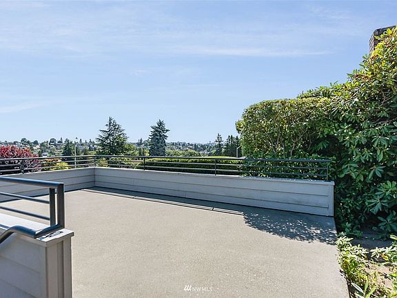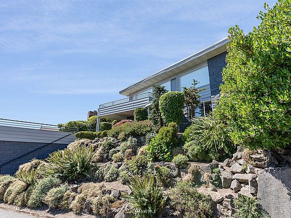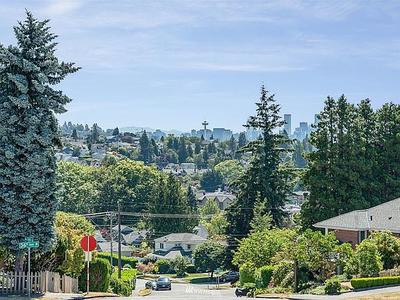 Perched high off the street with impressive Mt Rainier, City, & Bay views. Highly sought after area. Primary suite on main level with 2 separate closets, 3/4 bath, ceramic tile, glass block, & curved wall, plus access to an ironwood entertainment sized deck. Living room with gas fireplace & built-ins. Formal dining room with French doors to enjoyable view deck. Hardwoods throughout main floor. Kitchen has eating space, granite tile, & recessed lighting. Basement has 2 bedrooms, one with a sandstone gas fireplace, perfect for an office, full bath with tile surround, laundry room, & plenty of storage. Detached 1 car garage. Wonderfully landscaped, & private backyard firepit. All this, just blocks to Discovery Park & Magnolia Village.