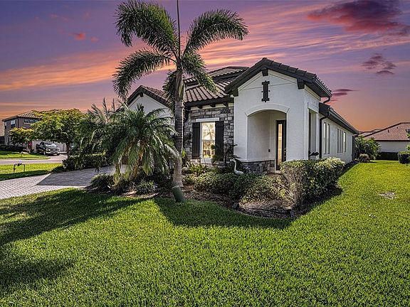 Why wait to build, when you can enjoy this better than new home now! Welcome to your MAINTENANCE FREE, SMART HOME in the GATED COMMUNITY of Bougainvillea Place. Rarely do homes become available in this exclusive neighborhood, and even more rare is the opportunity to own a PREMIUM CORNER LOT, tile-roof home boasting over 3,000 square feet of designer-inspired living space and top-tier upgrades throughout. From the moment you enter, you're greeted by refined elegance and attention to details—PAVED DRIVEWAY, CUSTOM GLASS DOOR, WOOD-LOOKING TILE FLOORS, CROWN MOLDING, CUSTOM LIGHTING, and a versatile flex space perfect for a home office, gym, cozy den or a 4th bedroom to fit your lifestyle. The CHEF'S GOURMET KITCHEN is a showpiece in itself, featuring QUARTZ COUNTERTOPS, SOFT-CLOSE CABINETRY, TOUCHLESS FAUCET, CAFE' KEURIG REFRIGERATOR, and a CUSTOM LIGHTING package that sets the perfect ambiance. The OPEN-CONCEPT dining room with TRAY CEILING flows seamlessly into a spacious living area and out to your SCREENED-IN LANAI, already PLUMBED FOR AN OUTDOOR KITCHEN—ideal for entertaining under the Florida skies. Tucked away in the rear of the home is your serene PRIMARY SUITE featuring a multipurpose sitting area, complete with a spa-like bathroom with dual sinks, walk in shower, tub, and CUSTOM WALK-IN CLOSET. Two additional bedrooms, full bath and laundry room are located on the opposite side of home for added privacy. But the real SHOWSTOPPER IS A HUGE OVERSIZED UPSTAIRS BONUS ROOM designed for both fun and function—complete with a CUSTOM WET BAR WITH BEVERAGE REFRIGERATOR, sink, and ample space to mount a large-screen TV—perfect for game nights, movie marathons, or creating a next-level guest suite with the 3rd full bathroom nearby. And the best part? TRUE MAINTENANCE-FREE LIVING. The HOA takes care of ALL exterior maintenance, FREE LAWN CARE, and even pest control—freeing you to enjoy the finer things in life. Just turn the key and move right in. Residents of Bougainvillea Place also enjoy access to a dog park, private CLUBHOUSE WITH RESORT-STYLE POOL, FITNESS CENTER, and an event space that can be reserved for private gatherings. Perfectly situated near ELLENTON PREMIUM OUTLETS, I-75, and just a short drive to SARASOTA, ST. PETERSBURG, TAMPA, BEACHES, GOLF, AIRPORT and the ORLANDO THEME PARKS, this home offers a rare opportunity to live luxuriously and conveniently. Don’t miss your chance to own this spectacular home in ONE OF THE MOST SOUGHT-AFTER COMMUNITIES IN THE AREA. Schedule your private showing today! Call me now!
