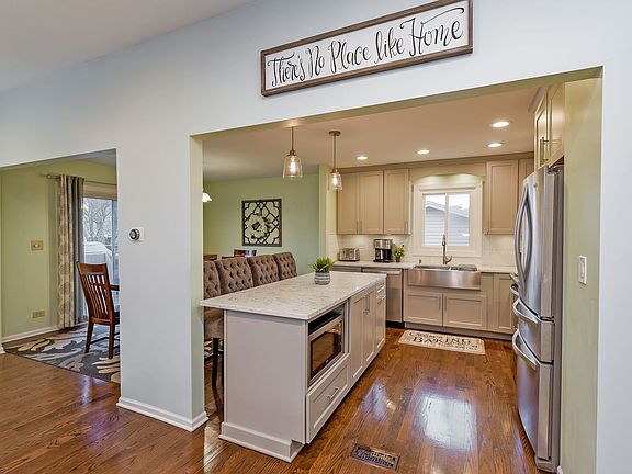 This gorgeous District #204 home has beyond everything on your wish list! Raised ranch plan with a TOTAL remodel throughout! Rich, dark hardwood floors on 2nd level - GORGEOUS NEW remodeled kitchen with quartz counters, subway tile backsplash, pendant lighting, new 42" grey cabinets, stainless appliances! Stunning and open to the living room with soaring vaulted ceilings with recessed lighting and sunny dining room. Lovely master suite with attached updated bathroom and great closet space. ALL 3 FULL bathrooms have been updated!! Super spacious family room is so light and bright, featuring a beautiful fireplace and built in bookshelves, and plenty of space for media and play area. Fantastic guest room and additional guest room/exercise room, storage and laundry room on this lower level. You will love entertaining inside and out at your new home, bright and open spaces inside, and a new deck and patio with fire pit ready for roasting marshmallows, perfect for summer entertaining outside. Save your money because ALL the updates have been done for you! NEW windows! ( with the exception of family and living room windows ) NEW Furnace, NEW AC and humidifier, NEW hot water heater, NEW Sump pump with battery back up, and NEW Front door. NEW Roof, NEW siding and NEW gorgeous paver patio with built in fire pit, rebuilt deck and front patio! NEW kitchen and appliances! NEW flooring! This home is completely turn key and move in ready. Convenient to shopping, train station, schools and highway. This is Absolutely a 5 Star home and is a must see!!!