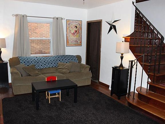 Cozy, clean, warm and bright! This 2 story home on a corner lot has exposed hardwood flooring, a beautiful staircase, decorative fireplace with mantle, dedicated dining room, spacious bedrooms, tons of storage and tasteful updates to the bathroom and kitchen. 2 car detached garage makes parking easy! The brick front porch is great for relaxing. Laundry room, giant storage room, and another bathroom in the basement. Come take a look!