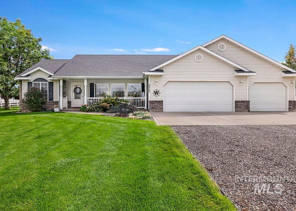 Charming home with an incredible yard in Windmill Heights! This well-maintained sits on 1 acre and has been freshly updated with new flooring and paint throughout. Inside you’ll find an open living area with a cozy fireplace and a functional kitchen with plenty of counter space and storage. Outside, the beautifully landscaped yard is the true highlight, meticulously cared for with room to garden, add a shop, or simply enjoy. Relax on the adorable front porch or entertain on the covered back patio. An oversized 4-car garage provides abundant space for vehicles, tools, and toys. All just minutes from Twin Falls in a quiet, established neighborhood.