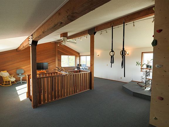 This unique Port McNeill home offers character, comfort, and big updates. Built in 1975 with a modern layout, it features new vinyl windows, perimeter drains, a heat pump, Blaze King woodstove, and cork flooring in the basement. The main floor has a bright great room with expansive ocean and mountain views, a dining area with deck access, and a kitchen overlooking the backyard. A 2-piece bath and laundry/mudroom complete this level. Upstairs is a versatile loft family room/office, while the lower level has 3 bedrooms and a full bath. Outside, enjoy a level yard with dog run, greenhouse, woodshed, quad storage, and multiple producing fruit trees and berry plants. Plenty of parking with a 2-car garage, RV/boat space, and a workshop/studio above the garage. A true standout!