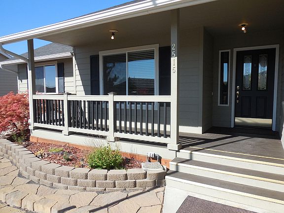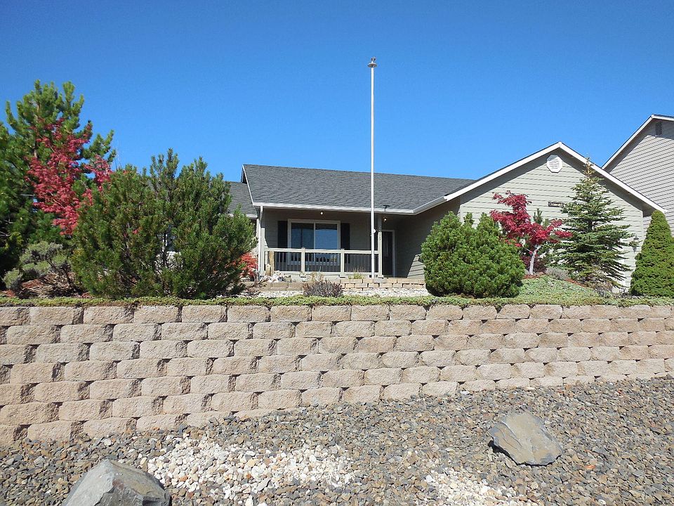 A complete package rambler! Interior ~ a floor plan with maximum use of square footage: a master suite with a large walk-in closet, 2 additional bedrooms, 2 full baths, vaulted ceilings in the dining and living rooms and in the kitchen that has a breakfast bar, the laundry room off the garage, a convenient coat closet at the entry. The two car attached garage is insulated and heated with a shop and built-in overhead storage on 3 walls. Exterior ~ fenced backyard, gated RV parking, sliders to canopied patio off dining room; sweet covered front porch, professionally designed low maintenance yard with mature landscaping of primarily native plants, front yard fountain and backyard waterfall; large garden shed and garage access from RV parking space. All kitchen appliances included.