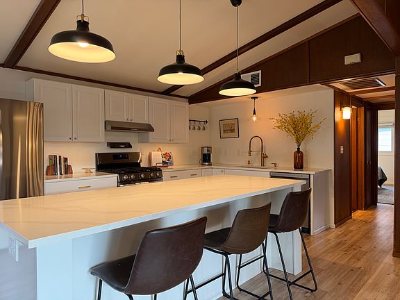 This midcentury modern home is fully furnished and boasts an open-concept living space with an updated kitchen and appliances, large kitchen island, original woodwork throughout, and a full bathroom on each level. With a two-garage in addition to an extra parking space, this Northeast home is available for rent for 1 month minimum/6 months maximum.