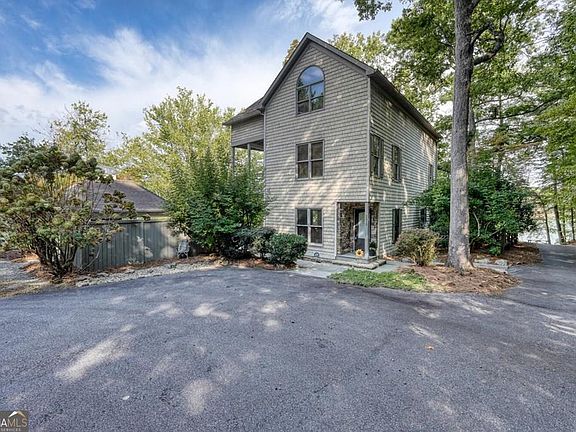Located on the dead end of Leisure Lane in Hiawassee GA, this stunning lakefront retreat sits on the edge of Lake Chatuge with year round deep water access. This 3-bedroom, 3.5-bath home features an open kitchen and living room design, A stack stone gas fireplace anchors the space, complemented by abundant natural light. Every room in this well appointed home has views of the lake below. The spacious primary suite has a porch overlooking the lake below and is a perfect spot for unwinding after a soak in the garden tub. Enjoy three levels with private bedroom porches, sunroom sitting areas, and breathtaking mountain views of unspoiled TVA lands. The private setting is surrounded by mature hardwood trees and native mountain foliage. The deep water lot includes an easy acess covered dock with a swim platform and party deck. A lakeside sitting area is the ultimate napping spot. The large deck with covered outdoor fireplace, 1/2 bath, and storage area is ideal for family gatherings. A perfect blend of luxury and nature.