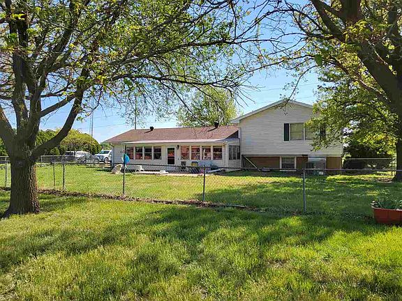 Serene - peaceful setting- fenced for farm animals- shop is 49' x 77' w/electric-grain bins- storage-pole bldg- the home as an enclosed sunroom. new roof and siding-heat and air-hot water heater-beautiful stone fireplace in family room- 3 bds -2.5 baths-formal liv and dining rm-lg kitchen- no bedrooms on 1st level-home is appointment only- they have a dog she looks totally sweet- do not approach or try to pet. She will bite-
