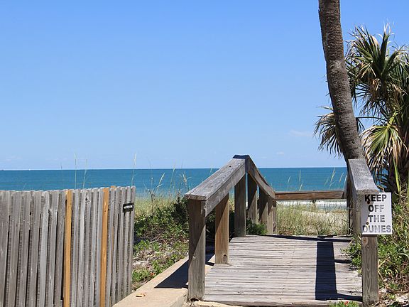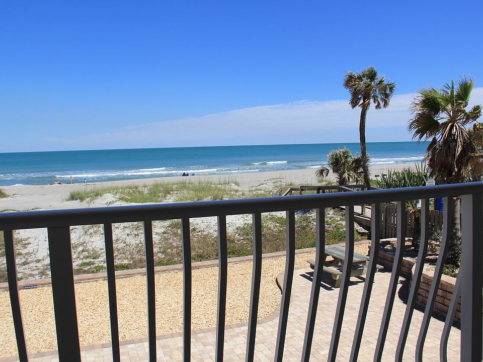 Endless Summer! Turn key fully furnished vacation rental on the direct ocean! Discover the beauty and tranquility of the Atlantic Ocean from the balcony of your very own beach front retreat!Updated with real wood cabinetry and granite tops. Tile throughout Full laundry in unit for added convenience! Includes an on site private pool and garage! Building has elevator! Step in and start making money day one! Great rental history in a quiet South Cocoa Beach location! .