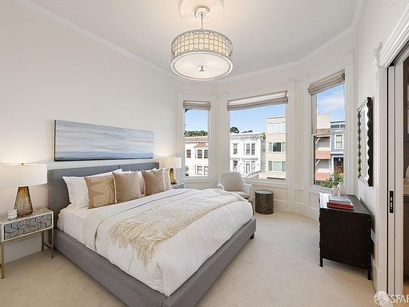 Nestled in the heart of Pacific Heights, just steps from the vibrant shops and restaurants of Fillmore Street and the serene beauty of Alta Plaza Park, this exquisite 3-bedroom, 2-bath top-floor condominium offers the perfect blend of classic charm and modern luxury. Occupying two spacious levels in a boutique 2-unit building, this turn-key residence spans over 2,500 square feet. The open-concept living and dining areas feature dramatic 25-foot vaulted ceilings, skylights, and exceptional volumeideal for both entertaining and everyday living. The chef's kitchen is a true showpiece, outfitted with premium stainless-steel appliances and opening directly to a sun-drenched rear deck with sweeping south-facing views. All three generously sized bedrooms are located on the same level, making this home perfectly suited for families at any stage of life. The primary suite boasts soaring 10-foot ceilings and a luxurious en-suite bath with a double vanity and custom-tiled shower. Upstairs, a massive, light-filled flex space awaitsperfect for a home office, gym, playroom, or media lounge. Additional highlights include: High-end finishes and abundant natural light throughout, In-unit washer and dryer, Two-car tandem parking with dedicated storage, Exceptional Walk Score of 99.