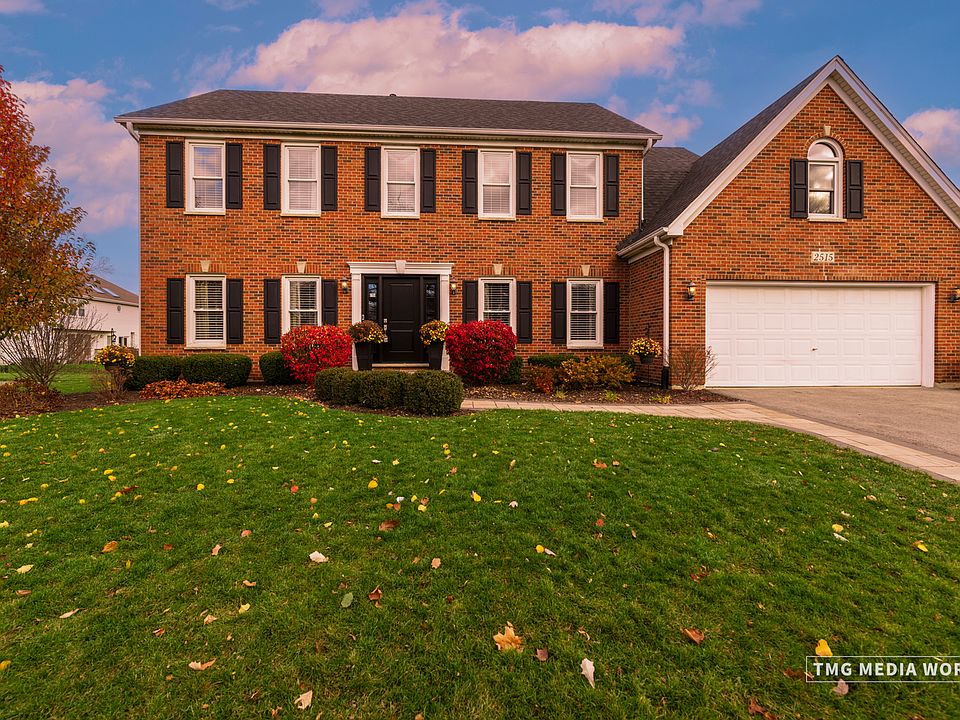 Stately brick front Georgian in great location. Newer paver walkway and front porch greet you along with professional landscaping and an inground sprinkler system. The impressive 2 story foyer is light and bright! Formal dining room with an architectural ceiling and wainscoting. Formal living room with crown molding and sliding pocket doors to sunken family room with a beautiful gas fireplace and gorgeous mantle. Spacious kitchen with breakfast room and large island with additional seating, granite countertops, planning desk and SS appliances (Microwave non-working & conveyed AS IS). Large 1st floor laundry room is adjacent to the powder room and 1st floor den and can be converted to a full bath making it an ideal in-law suite. Master bedroom has a vaulted ceiling and a sitting room, along with a luxury master bath featuring dual vanities, soaker tub and separate shower. All secondary bedrooms are very nicely sized. Finished basement with recreation room and a large crawl space for additional storage. Gorgeous yard with newer paver patio with 1/2 wall. Lots of new paint and updates throughout! Seller will include Southpointe Pool Bond (annual membership buyer responsibility). Close to shopping and restaurants.