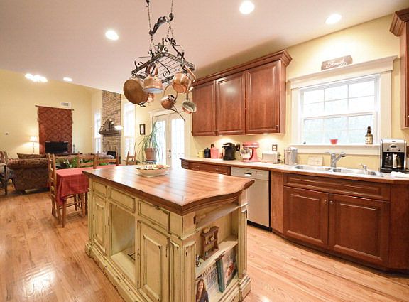 Warm and Inviting describes this well appointed home situated on a 1.4 acre lot. Master suite on the main includes hardwood floors, tile walk in shower, double vanity and sinks, jacuzzi style tub, linen closet, and large walk in closet. All of the main level features hardwood floors. Great room is open to the kitchen and dining areas. There is a walk in laundry room/ pantry and a half bath located on the main level as well. The fireplace is the focal point, along with a vaulted ceiling. The kitchen has beautiful stained cabinets, a custom island with granite top, and great cabinet and countertop layout. Upstairs there are 3 bedrooms and 1 full bath. The basement features a custom made wooden bar, a full cedar finished room/ wine cellar, tile floors in the entertainment room, a bedroom/ playroom, an office, and a full bath. The downstairs garage, which covers the whole side of the basement, would be a great workshop or is perfect for extra cars or boats or lawn equipment! This home has many extras and shows really well.