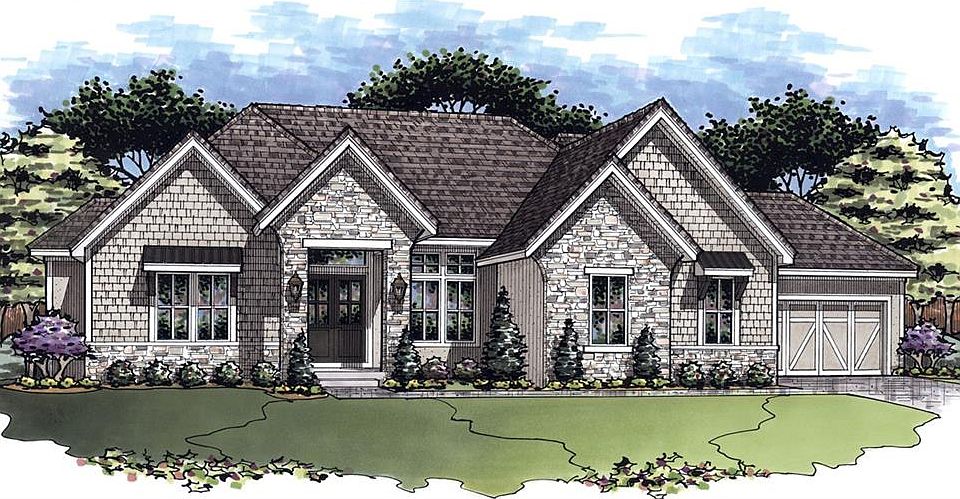 The expanded Firethorn by Roeser Homes - A spectacular Reverse 1.5 Story with a 4 car garage on an estate lot in Hidden Lake Estates! Come pick your finishes! This stunning home is planned for upgrades inside and out! This open concept plan features a spectacular great room with limestone fireplace, built-in shelving & soaring vaulted ceilings! Gourmet kitchen has island with quartz tops, gas range, custom cabinets and hood, prep kitchen that connects to pantry and a large mudroom with benches and lockers off garage. Main level primary suite offers an abundance of space and privacy with hardwood floors, zero-entry shower, freestanding tub, double vanities and a large walk-in closet that conveniently connects to the laundry room with sink. Main floor also has a second bedroom/office, a second full bath and a half bath for guests. Enjoy the outdoors on the large covered deck with built-in grill space. The lower level features three additional bedrooms, two full baths, a half bath, wine room and a large rec room with second fireplace and a full wet bar - perfect for entertaining. Walkout lot backing to trees. Tile roof and suspended garage for extra storage/finish space. Impeccable design and details throughout! Combined with full access to Cedar Creek's incomparable Amenity Package including: 65 Acre fishing and sailing lake, 3 swimming pools, Clubhouse with gym, racquet/basket court, Lighted tennis and pickleball courts, volleyball courts, parks, playgrounds and trails. Welcome home!