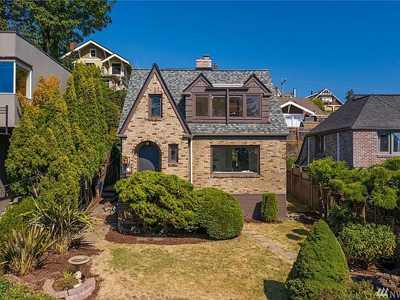 Quintessential Queen Anne Tudor with amazing views of Puget Sound & the Olympic mountains. Enjoy the sunset from both floors in this must see move in condition home. Stunning living room w/ beautiful fireplace, formal dining rm w/ French doors that lead to a private backyard. Kitchen w/ brand new appliances(not pictured) & eat in space w/ large windows that look over the private backyard. New roof, paint, hardwood floors and sewer to the main. 2 car garage & less than 15min to SLU & Downtown!!