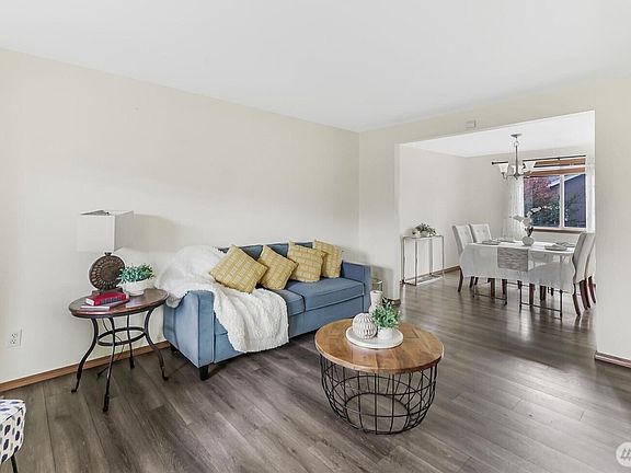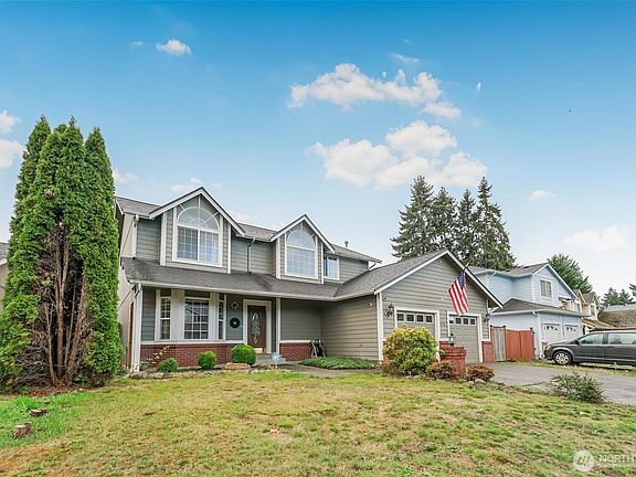 Move-in ready two-story home featuring an inviting open floor plan. Spacious living and dining rooms with a cozy fireplace create the perfect setting for the entertaining or relaxing. The kitchen is centrally located, tucked between living area and dining area with convenient access to a sliding door leading to the fully fenced backyard. Upstairs includes three generous bedrooms, including primary suite with a full bath, double sinks, and a walk-in closet. 2.5 baths, and a two car attached garage. Conveniently located near JBLM, schools, dining and all local amenities. This home offers comfort, functionality, and a great location all in one.