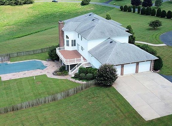 ANXIOUS TO SELL! All offers will be considered! Gorgeous custom built colonial on 5 beautiful acres! Attached 3 car side-loading garage. Walk into this 2 story foyer with oak staircase and Italian marble floor, leading into a 2 story family room with tons of natural light and a floor-to-ceiling fireplace. Gourmet eat-in kitchen with double oven and large island includes a 6 burner cook top; located off of the dining room with gleaming hardwood floors. Potential main level 5th bedroom office den. A balcony overlooks the foyer, off 1 of 2 master bedrooms. Master en suite includes his and hers walk-in closets. Basement includes rec room with wet bar for entertaining and walkout French doors to stamped concrete patio. Patio surrounds a beautiful 40 x 20 heated pool overlooked by a spacious Trex deck with vinyl railings. Constant pressure well pump. 2 geothermal heat pumps. 2 water heaters. Lots of storage! So many more amenities to list!
