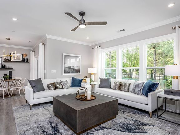 Enjoy the gorgeous wooded view from your covered porch and extended patio in our popular Fairfax plan! This home has a formal foyer & dining area; a chef's kitchen w/ huge island, Glacier Gray cabinets & SS gas Kitchen Aid appliances. Both secondary bedrooms have en suite baths. Relax in the amazing Owner's Retreat featuring a sitting area and a great covered deck to sit out and enjoy your morning coffee! Home will be ready in August, move in this Summer!