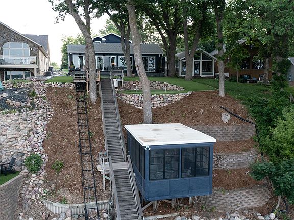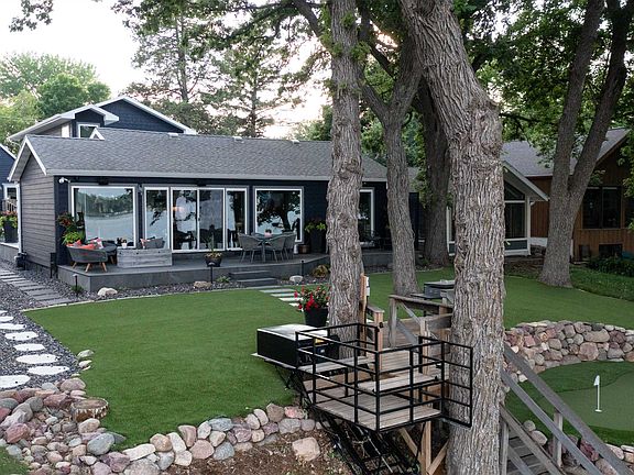 Don't miss out on this beautiful West Lake property on Manhattan beach. This property's unique offering of a main house and a separate guest house, providing the perfect setup for multi-generational families and hosting friends with 7 bedrooms, 4 bathrooms, two laundry rooms and attached garages on both houses. The flexibility the guest house provides with its own living space, bedrooms, bathroom and kitchen offering privacy and comfort for guests or overflow. The lakeside primary has attached bath with heated floors and a showcase walk in closet with second laundry off the main house. Take the lakeside tram down to the dock or the tranquil space of three season oasis with entertainment amenities. The property is beautifully landscaped with artificial turf and putting green with exterior lighting that is all on timers. This is a must see!