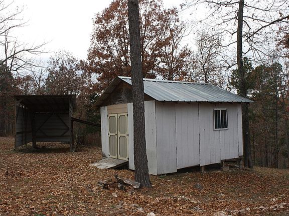 This 25.4 ac wooded land with a modest 3 Bd/1Ba cabin on county road 8001 is a perfect weekend get away or permanent home. 2 car carport and also an RV cover, several outbuildings for storage. Land boasts several springs with wet weather creek, caves to explore, several old logging roads, flat spots to build your forever home with beautiful views. 2 hunting stands in place with shooting lanes. Access to Bull Shoals lake 20 min to end of MC 8001. Adjoining 10 acres available to purchase also. Selling AS IS WHERE AS