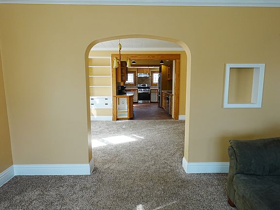This bungalow house in Benson is move-in ready. With modern updates blended with classic charm. Main level features primary bedroom, full bathroom with heated tile floor and Jacuzzi tub, kitchen has custom cabinets, gas stove, stainless steel appliances heated tile flooring. Space is rounded off with living room and dining room. Upper level has two additional bedrooms, 3/4 bathroom and a flex/ loft space. Basement is unfinished yet clean can't be used as additional storage or workspace. Fully fenced backyard. With two car detached garage.